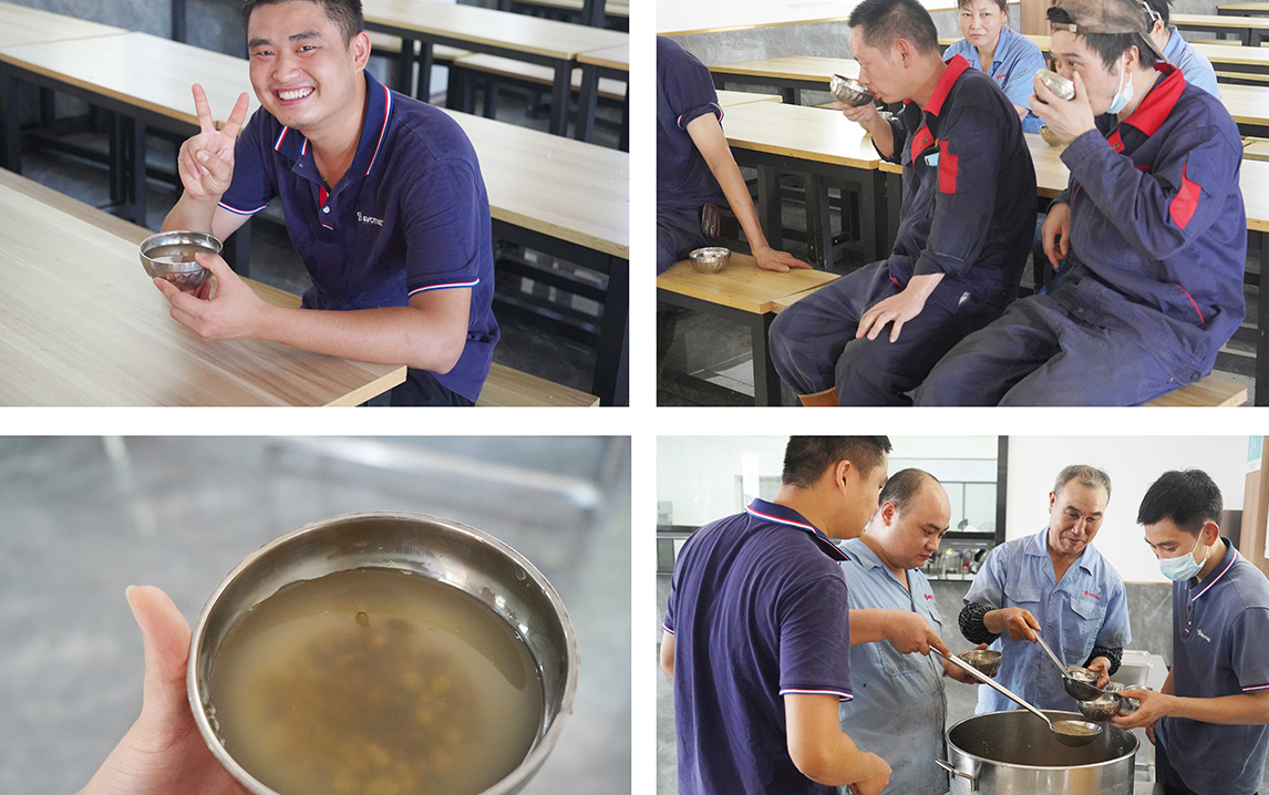 为切实做好一线员工防暑降温工作,公司准备了西瓜、绿豆汤、盐汽水等防暑降温饮品,向一直坚守在各自岗位上的一线员工送去一缕“凉风”,吹散他们心头的燥热,保障一线员工在高温天气下的安全与健康。