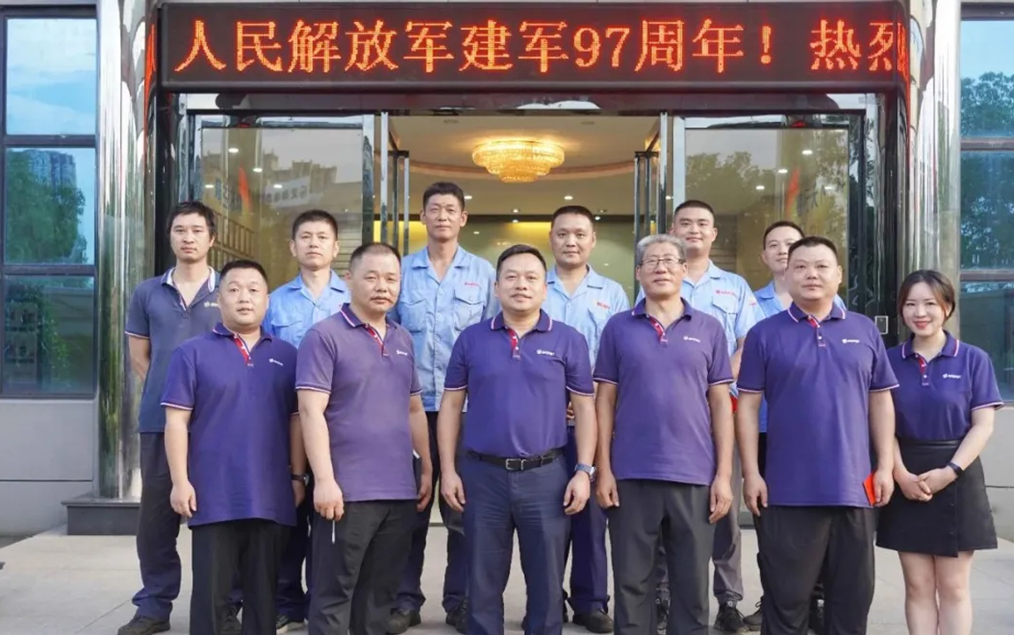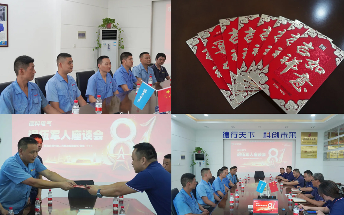 为了进一步弘扬拥军优属的光荣传统,JIUYOU.COM九游电气组织开展“八一建军节退伍军人座谈会”。会上,总经理王远锋首先代表全体员工向8位退伍军人送上美好的节日祝福,并对退伍军人在公司发展过程中做出的突出贡献给予充分肯定,鼓励他们继续发扬优良传统和作风,保持军人严谨的作风、严明的纪律和强烈的责任感,为公司的发展贡献更大的力量。参会的退伍军人们也结合个人实际,依次交流发言。会后,公司为退伍军人发放节日祝福红包,并集体合影留念。