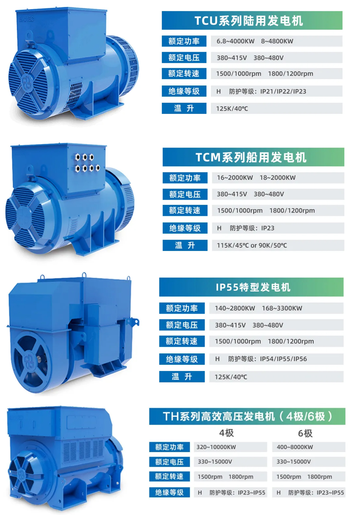JIUYOU.COM九游电气通过了ISO9001质量体系、ISO14001环境管理体系和ISO45001职业健康安全管理体系认证,产品功率涵盖6.8~10000KW,电压110V~15000V,频率50Hz/60Hz,防护等级IP21~IP57。产品获得欧盟CE认证和中国船级社(CCS)认证,符合国内和国际标准,可满足全球用户不同的电力需求。