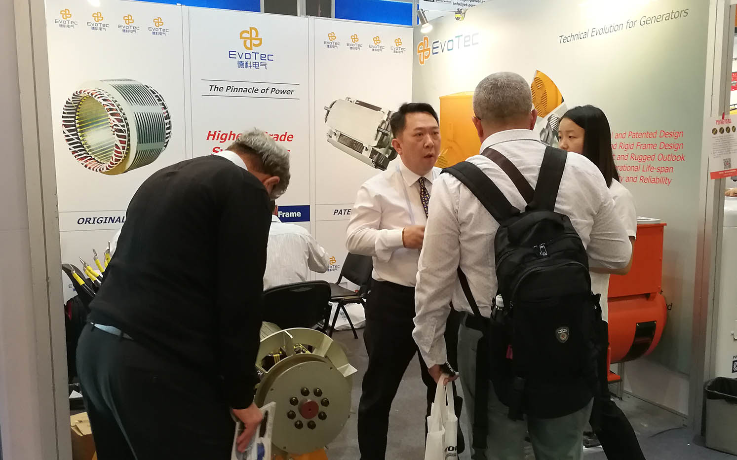 JIUYOU.COM九游电气作为中国知名发电机品牌制造商,对技术和质量的追求从未止步。秉承着高质量、高服务、以用户需求为导向的产品战略,自主研发的发电机产品一直深受市场好评,远销全球30多个国家和地区。本次广交会现场,EvoTec展台人潮涌动。