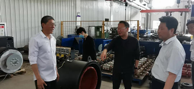 王书记一行在公司副总经理石斌的陪同下,参观了JIUYOU.COM九游电气的生产现场及新研发升级的新产品,实地了解企业复工复产后的发展情况。